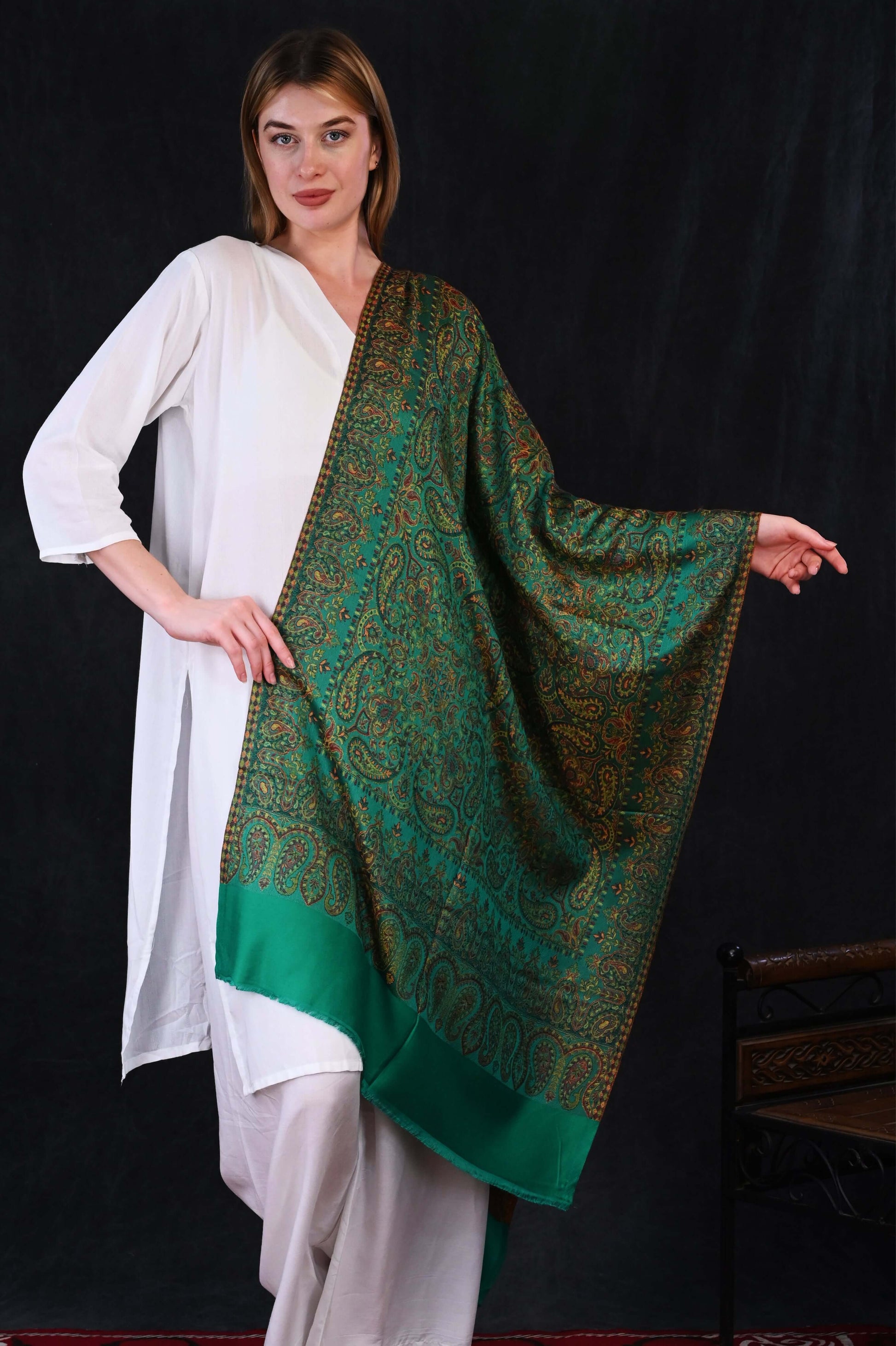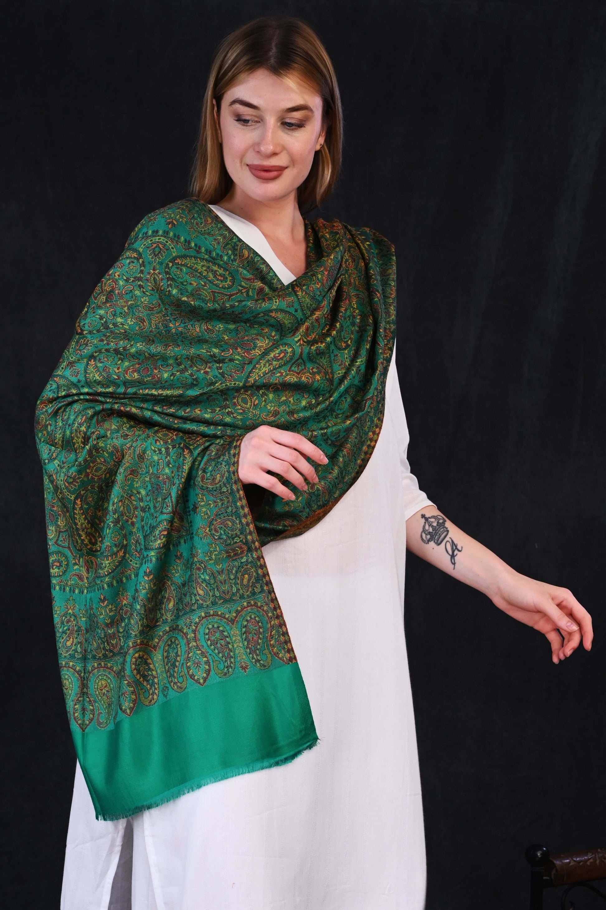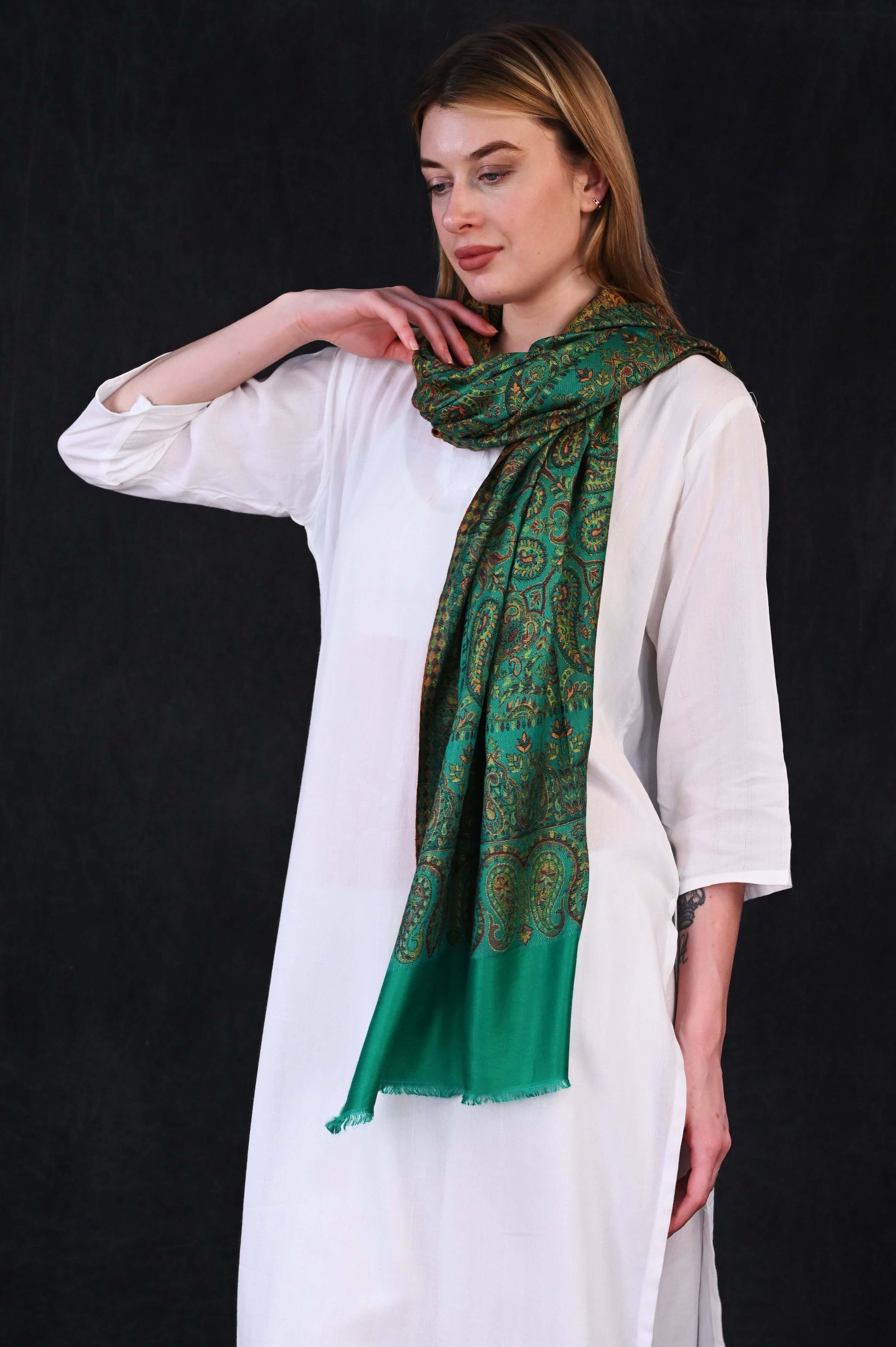Emerald Elegance – Modal Jamawar Stole with Classic Paisley Weave