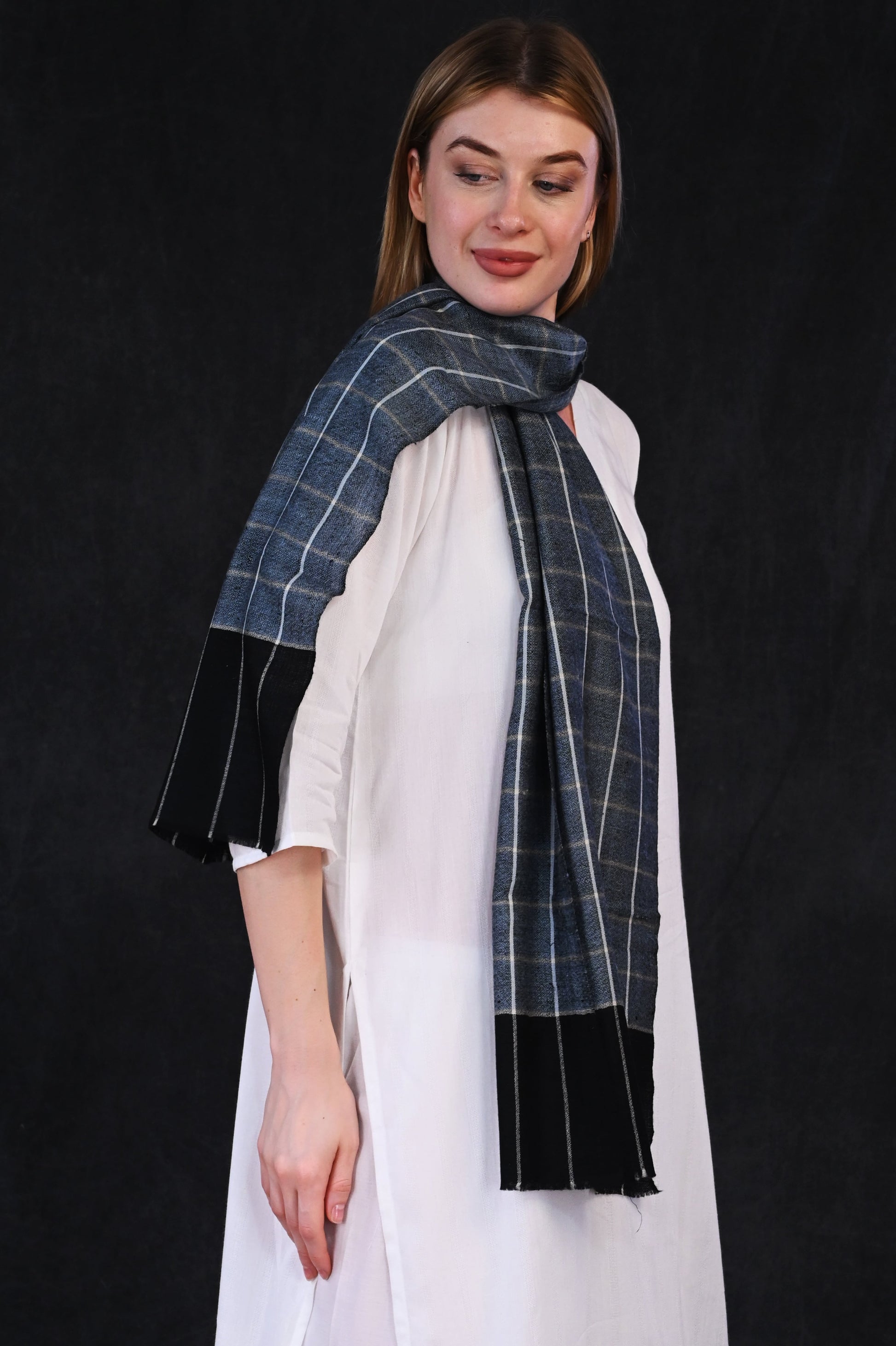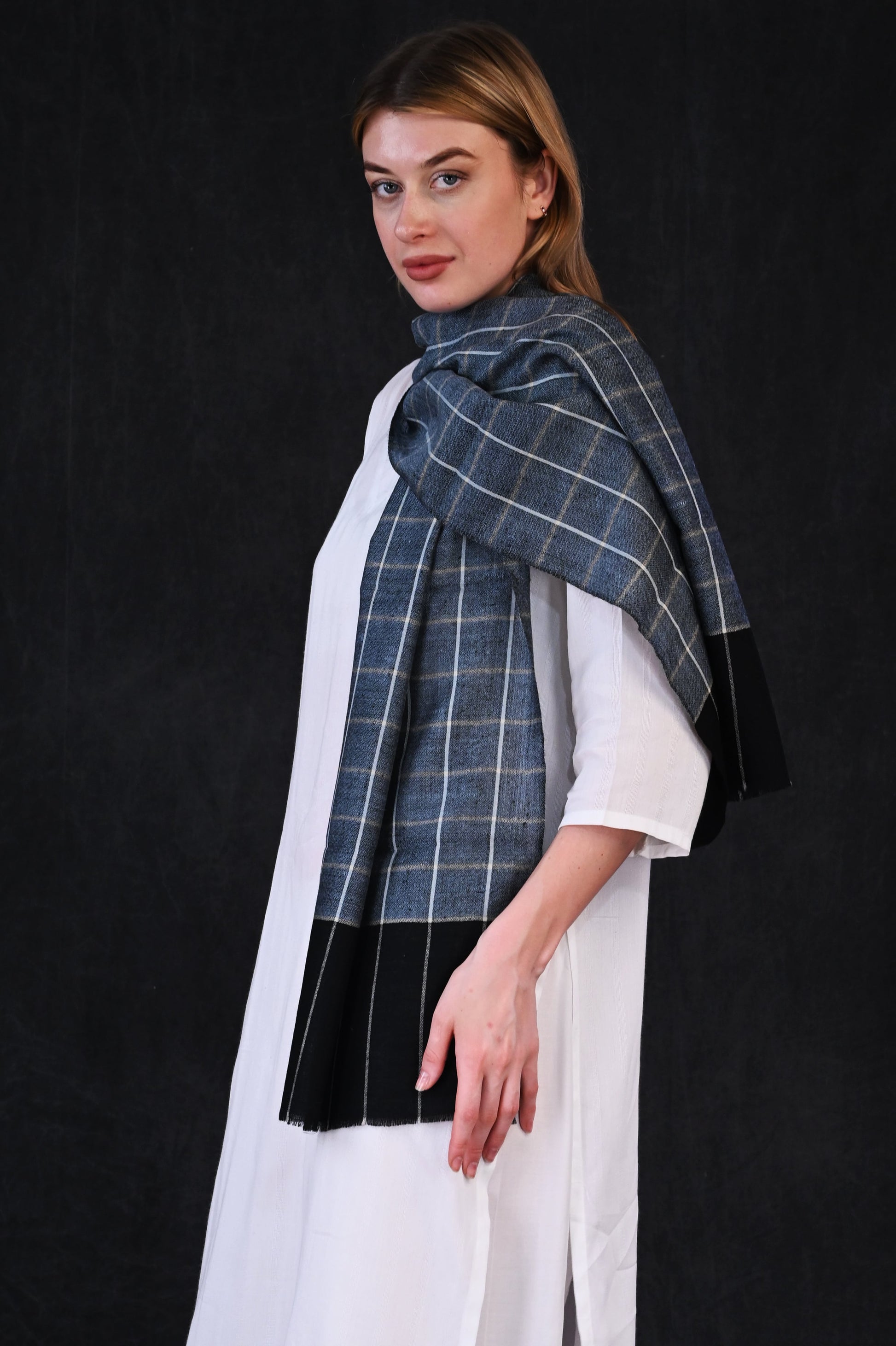 Pashmina Check Muffler – Dual-Tone Black & Grey with Subtle Checks