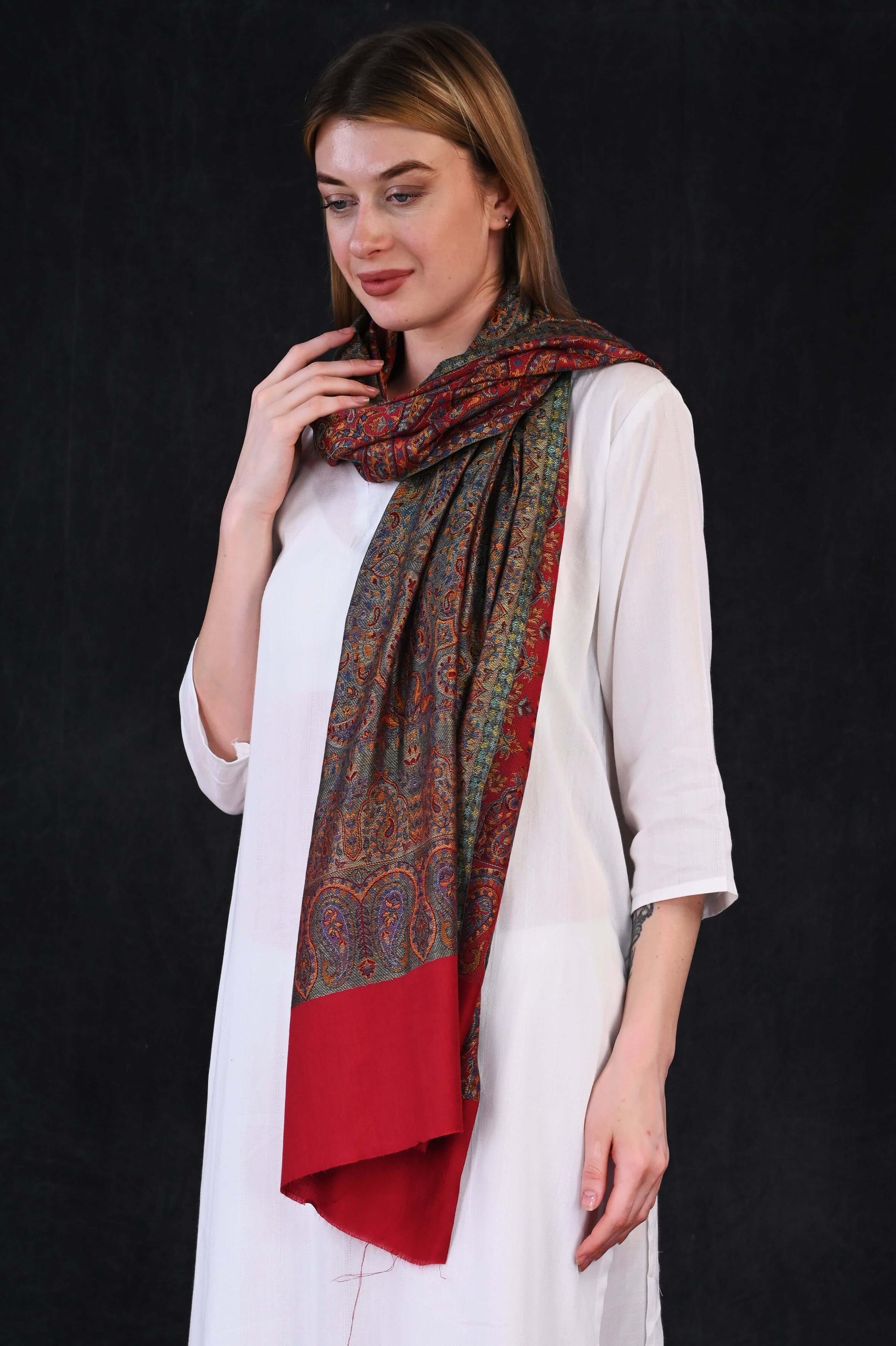 Royal Maroon – Modal Jamawar Stole with Ornate Paisley Borders