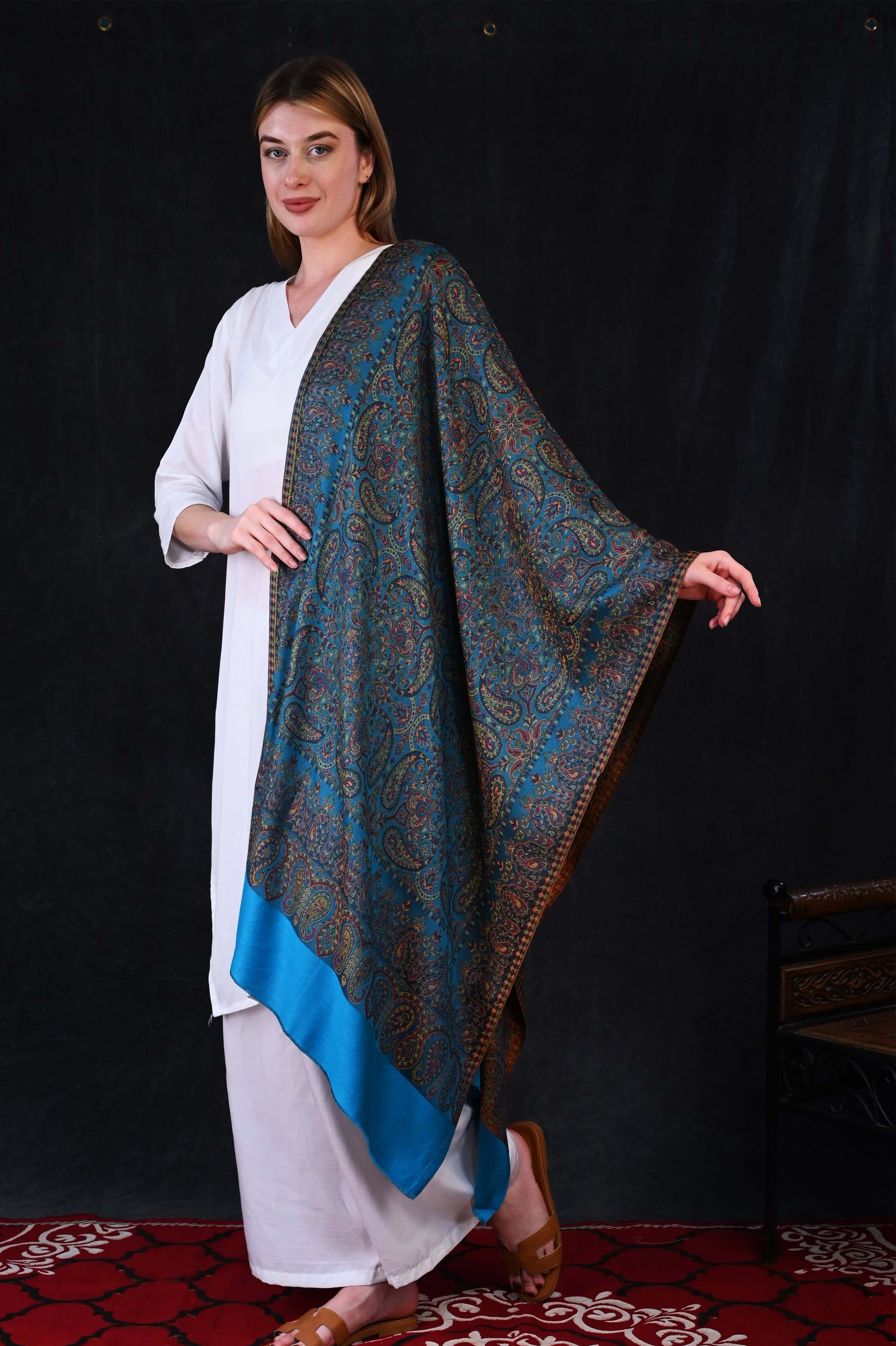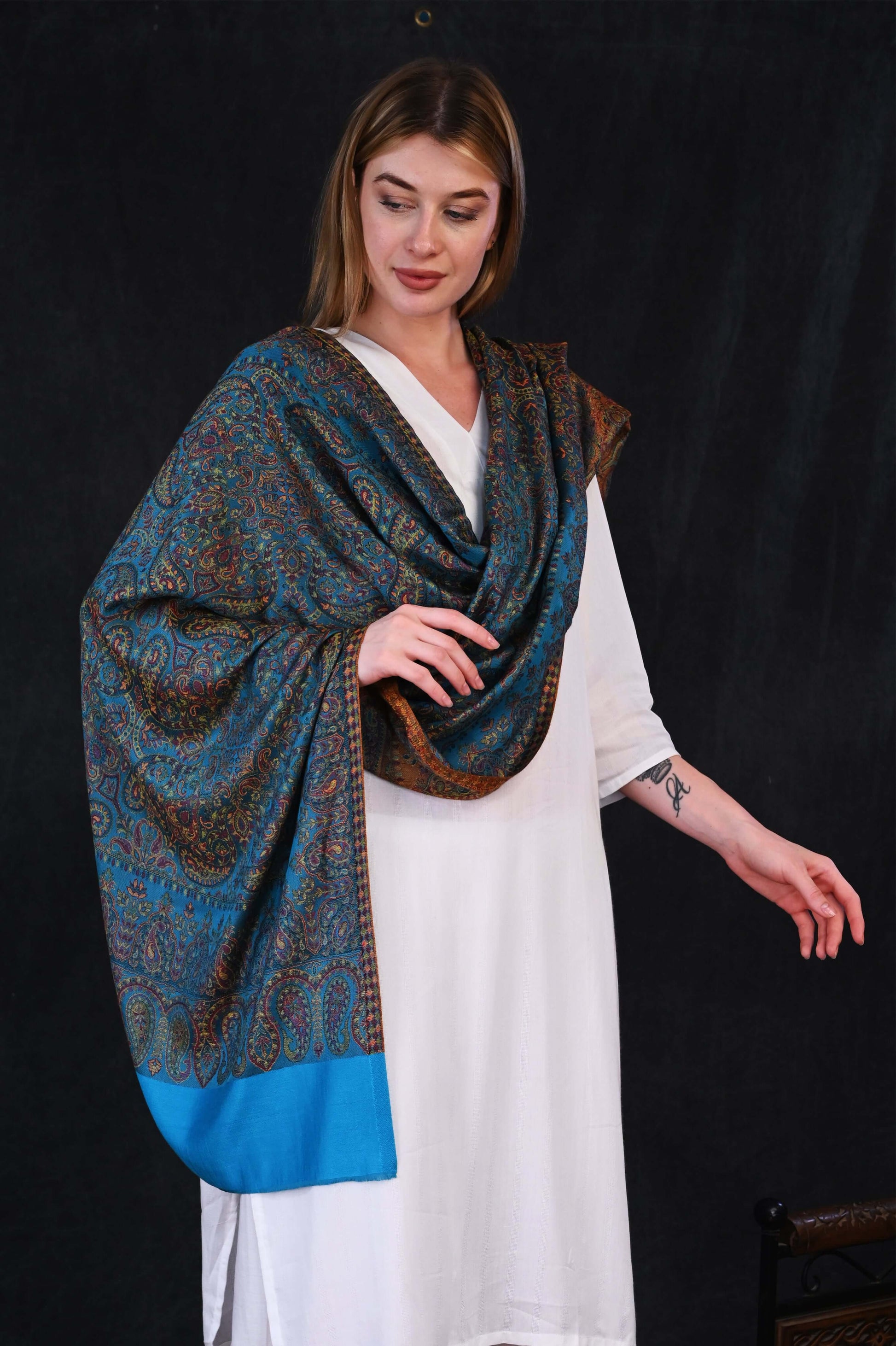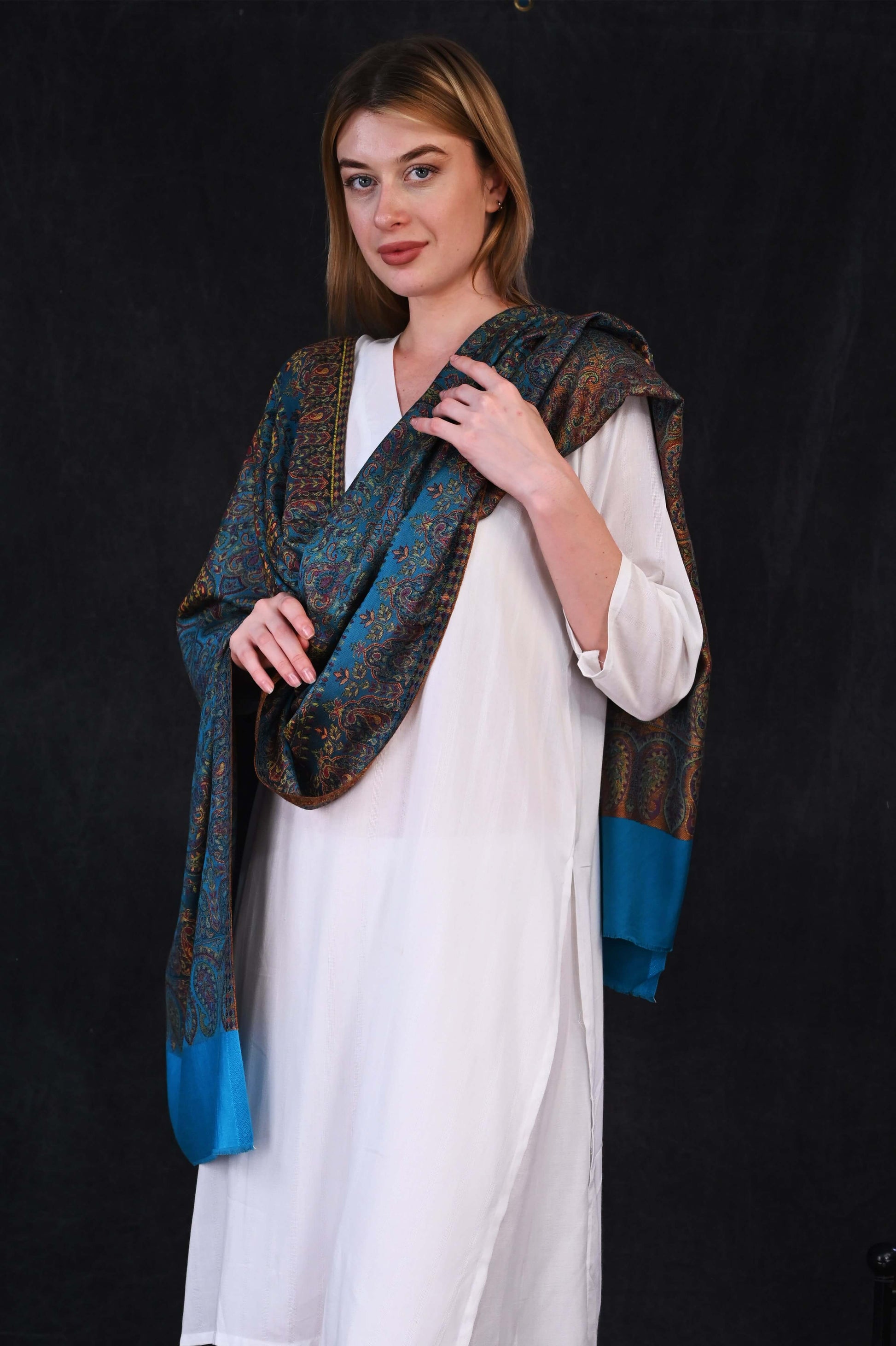 Teal Mirage – Modal Jamawar Stole with Regal Paisley Border